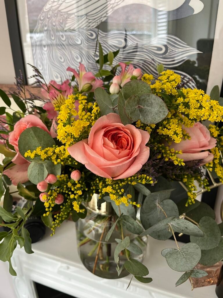 They don’t need to be elaborate. Grocery‑store tulips in a water pitcher on your table absolutely count.